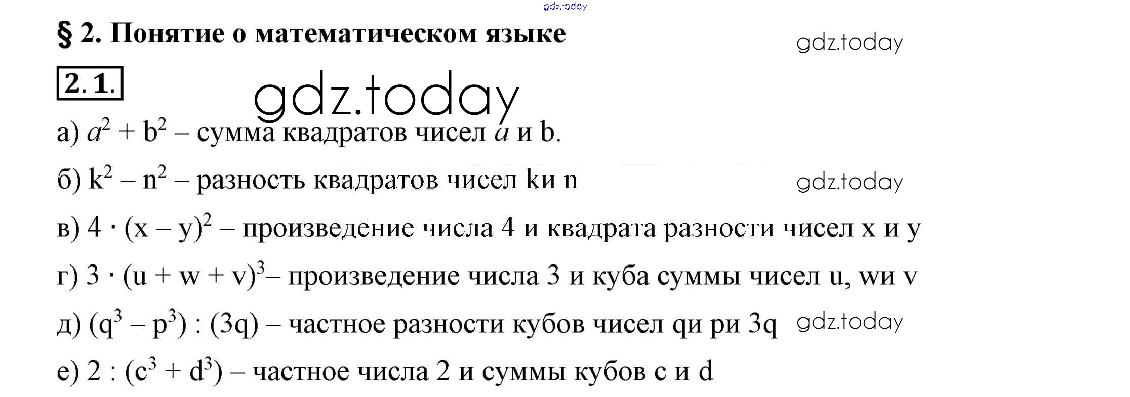 На страницах сайта gdz.today вы найдете учебный и вспомогательный материал, направленный на улучшения знаний школьной программы. ГДЗ - онлайн мир знаний Решение к §2. Понятие о математическом языке 2.1 Учебнику по Алгебре для 7 класса Мордкович, Семёнов Просвещение 2018
