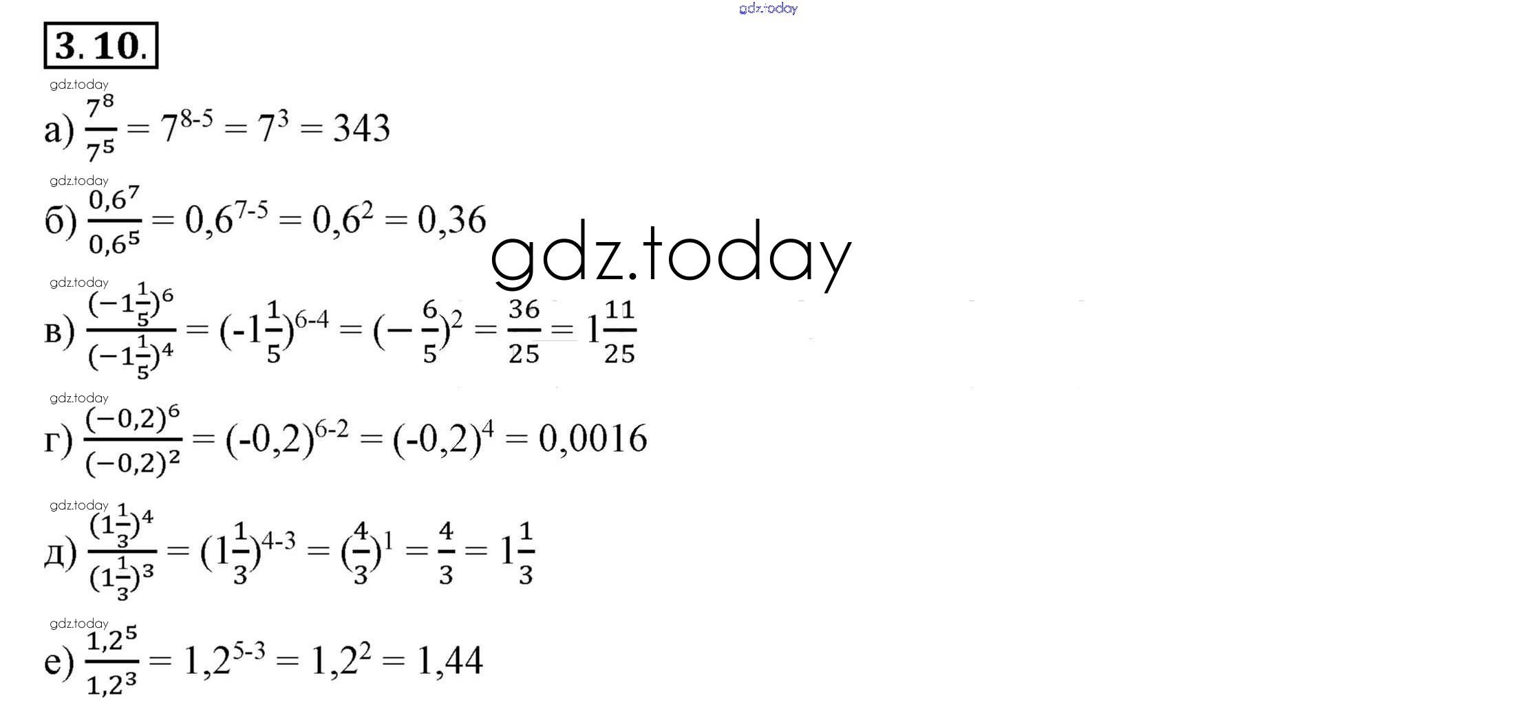 Ответы к Решение к §3. Свойства степеней с натуральными показателями 3.10 Учебнику по Алгебре для 7 класса Мордкович, Семёнов Просвещение 2018