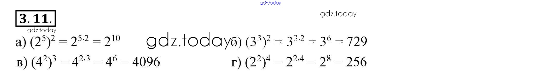 Ответы к Решение к §3. Свойства степеней с натуральными показателями 3.11 Учебнику по Алгебре для 7 класса Мордкович, Семёнов Просвещение 2018