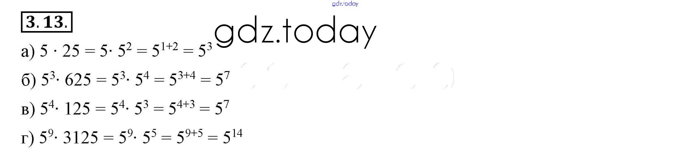 На страницах сайта gdz.today вы найдете учебный и вспомогательный материал, направленный на улучшения знаний школьной программы. ГДЗ - онлайн мир знаний Решение к §3. Свойства степеней с натуральными показателями 3.13 Учебнику по Алгебре для 7 класса Мордкович, Семёнов Просвещение 2018