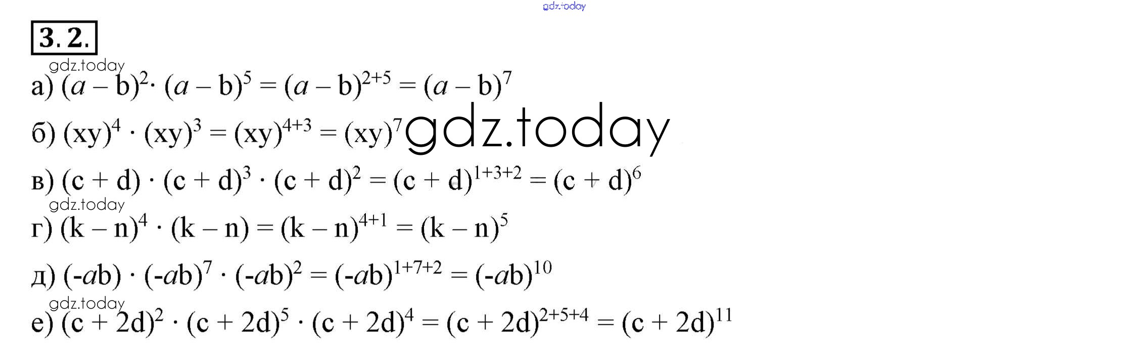 Ответы к Решение к §3. Свойства степеней с натуральными показателями 3.2 Учебнику по Алгебре для 7 класса Мордкович, Семёнов Просвещение 2018