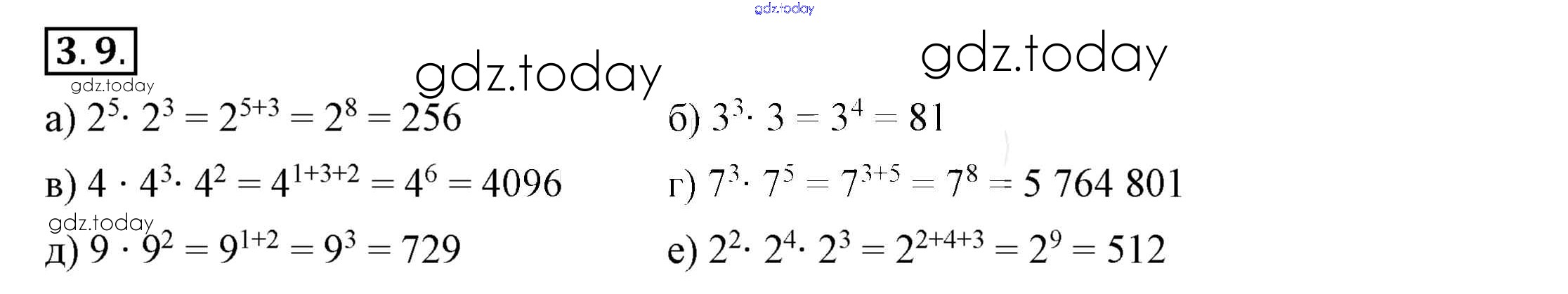 Ответы к Решение к §3. Свойства степеней с натуральными показателями 3.9 Учебнику по Алгебре для 7 класса Мордкович, Семёнов Просвещение 2018
