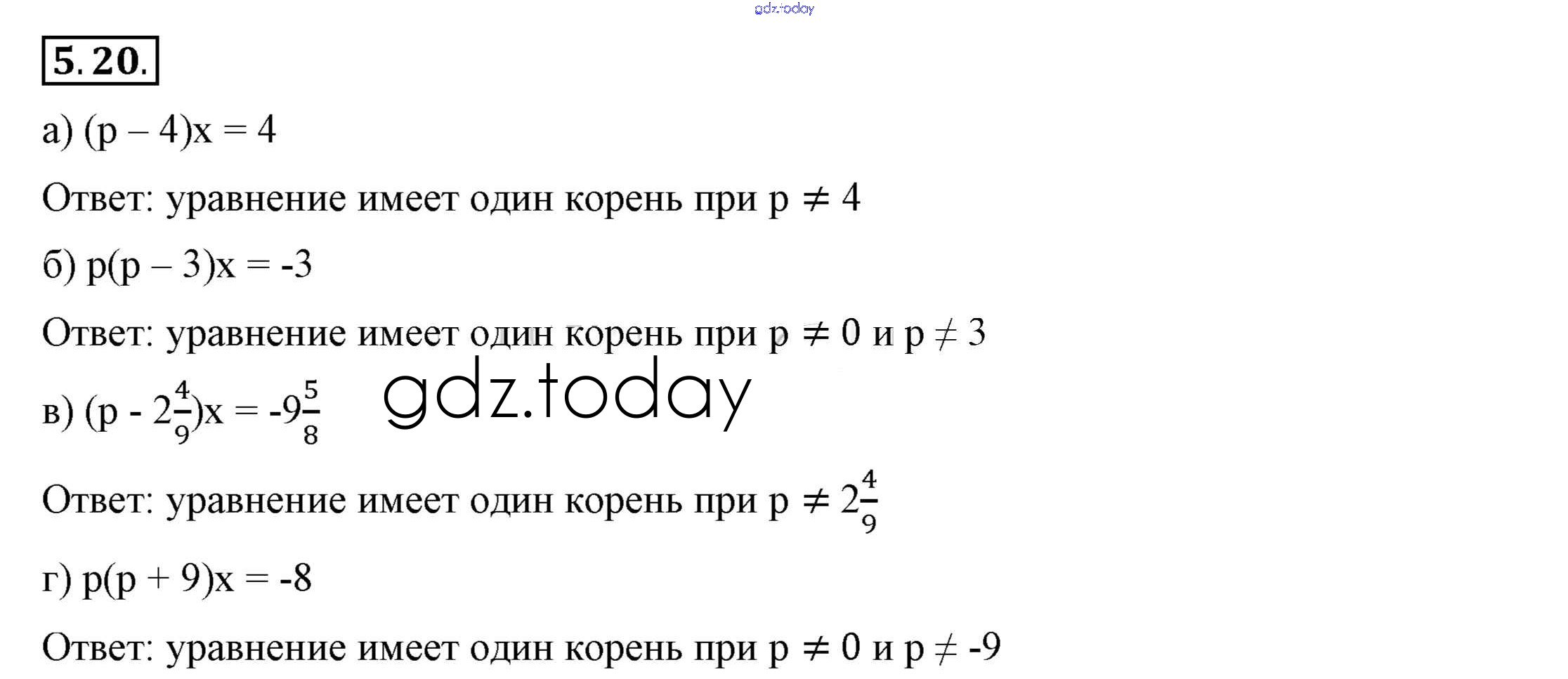 На страницах сайта gdz.today вы найдете учебный и вспомогательный материал, направленный на улучшения знаний школьной программы. ГДЗ - онлайн мир знаний Решение к §5. Линейные уравнения с одной переменной 5.20 Учебнику по Алгебре для 7 класса Мордкович, Семёнов Просвещение 2018