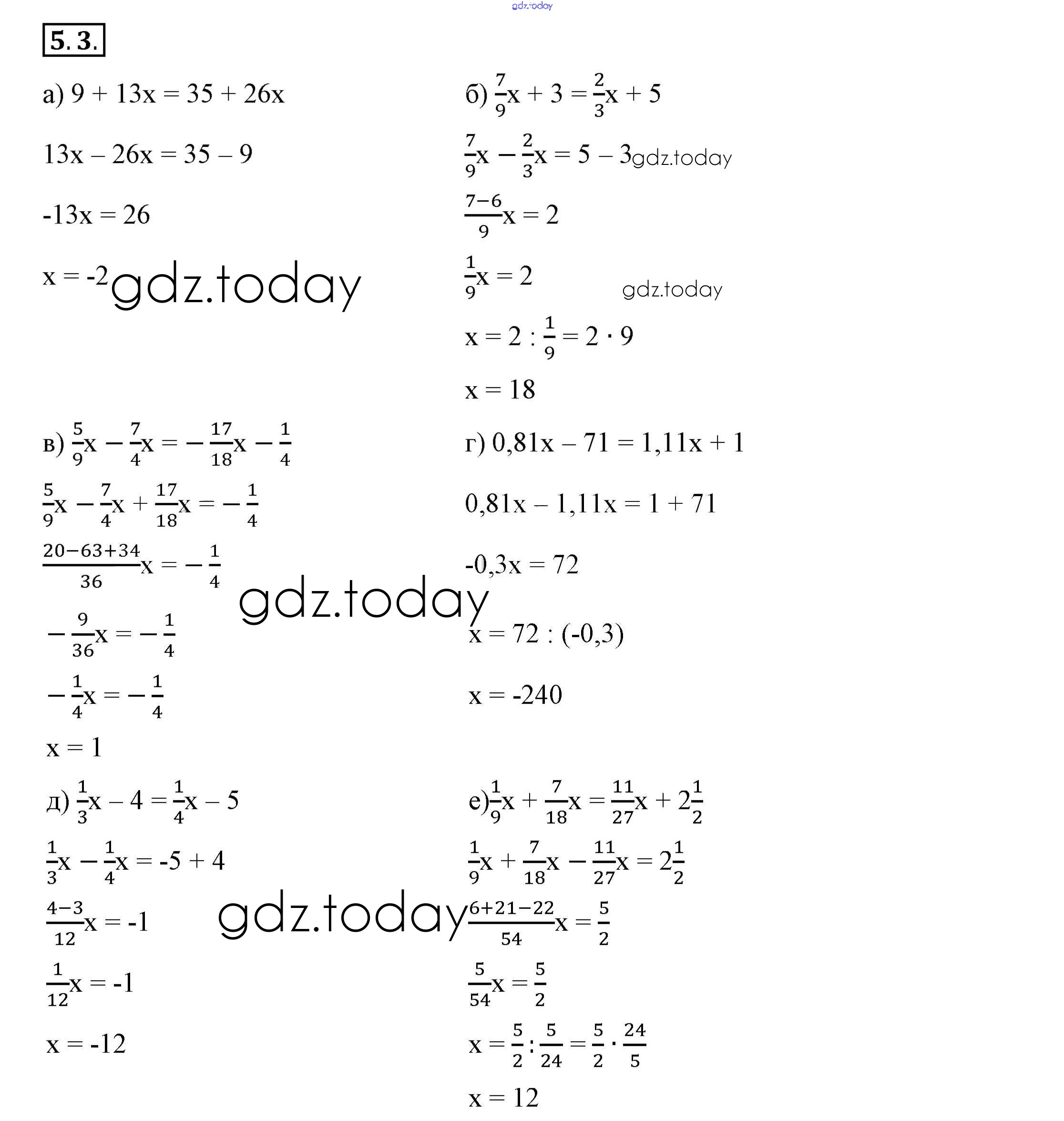 Ответы к Решение к §5. Линейные уравнения с одной переменной 5.3 Учебнику по Алгебре для 7 класса Мордкович, Семёнов Просвещение 2018