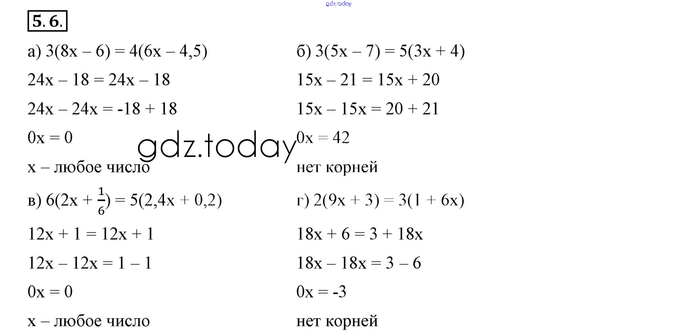 На страницах сайта gdz.today вы найдете учебный и вспомогательный материал, направленный на улучшения знаний школьной программы. ГДЗ - онлайн мир знаний Решение к §5. Линейные уравнения с одной переменной 5.6 Учебнику по Алгебре для 7 класса Мордкович, Семёнов Просвещение 2018