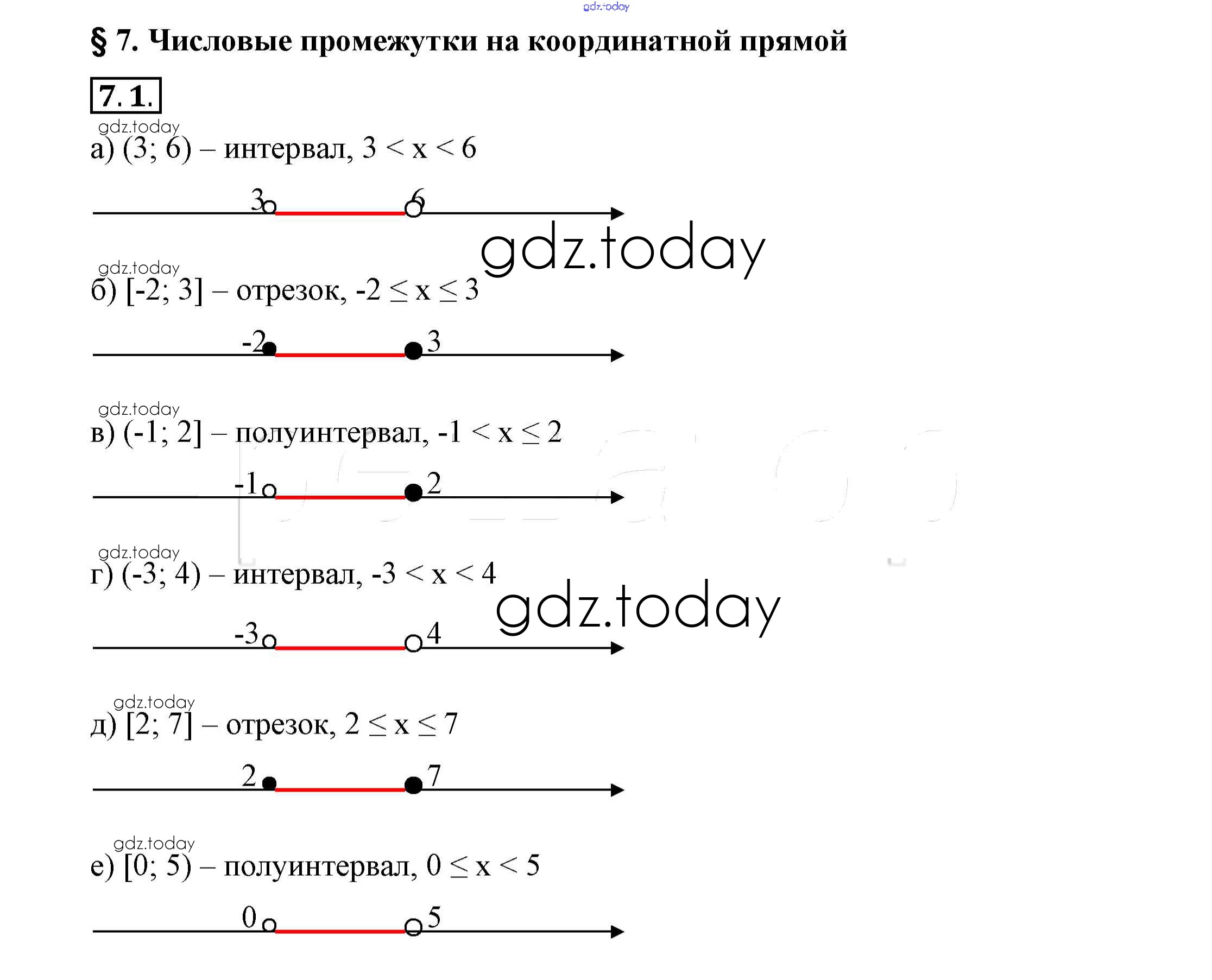 Ответы к Решение к §7. Числовые промежутки на координатной прямой 7.1 Учебнику по Алгебре для 7 класса Мордкович, Семёнов Просвещение 2018