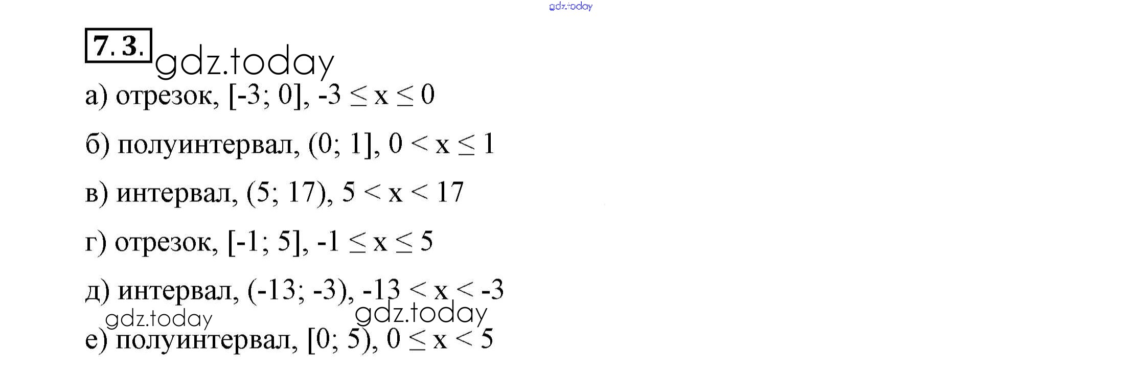 На страницах сайта gdz.today вы найдете учебный и вспомогательный материал, направленный на улучшения знаний школьной программы. ГДЗ - онлайн мир знаний Решение к §7. Числовые промежутки на координатной прямой 7.3 Учебнику по Алгебре для 7 класса Мордкович, Семёнов Просвещение 2018