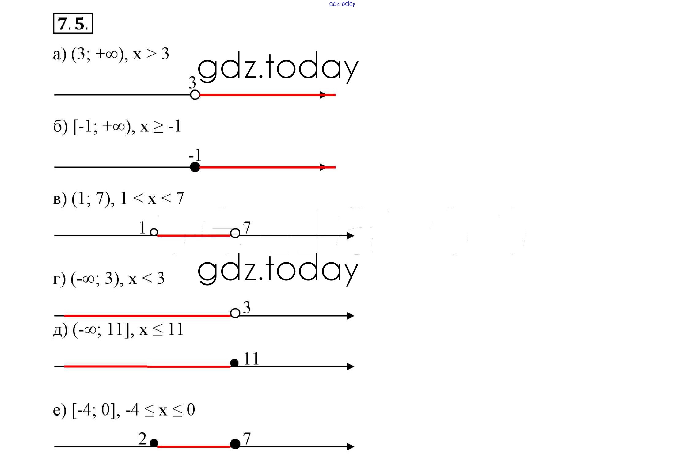 На страницах сайта gdz.today вы найдете учебный и вспомогательный материал, направленный на улучшения знаний школьной программы. ГДЗ - онлайн мир знаний Решение к §7. Числовые промежутки на координатной прямой 7.5 Учебнику по Алгебре для 7 класса Мордкович, Семёнов Просвещение 2018