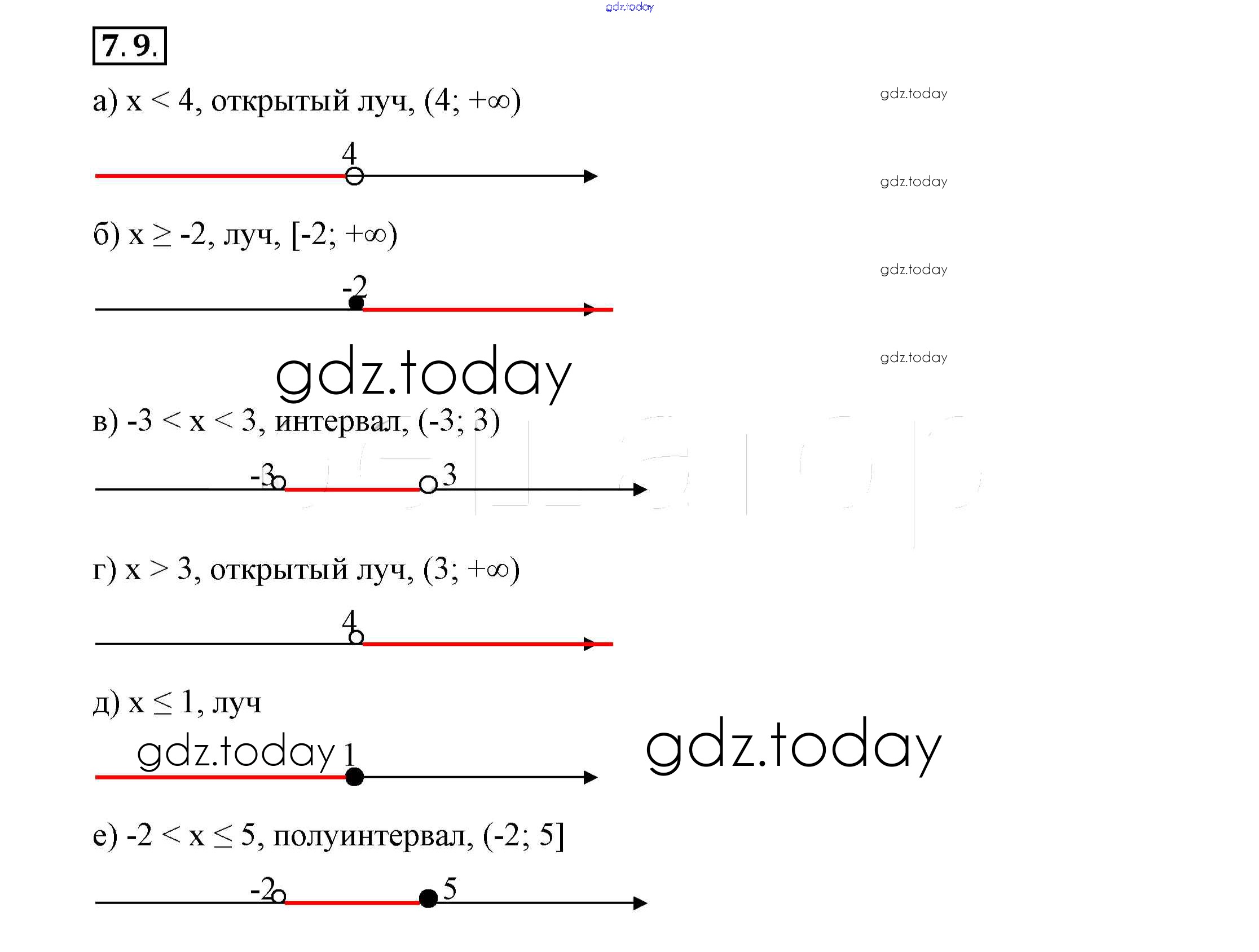 Ответы к Решение к §7. Числовые промежутки на координатной прямой 7.9 Учебнику по Алгебре для 7 класса Мордкович, Семёнов Просвещение 2018