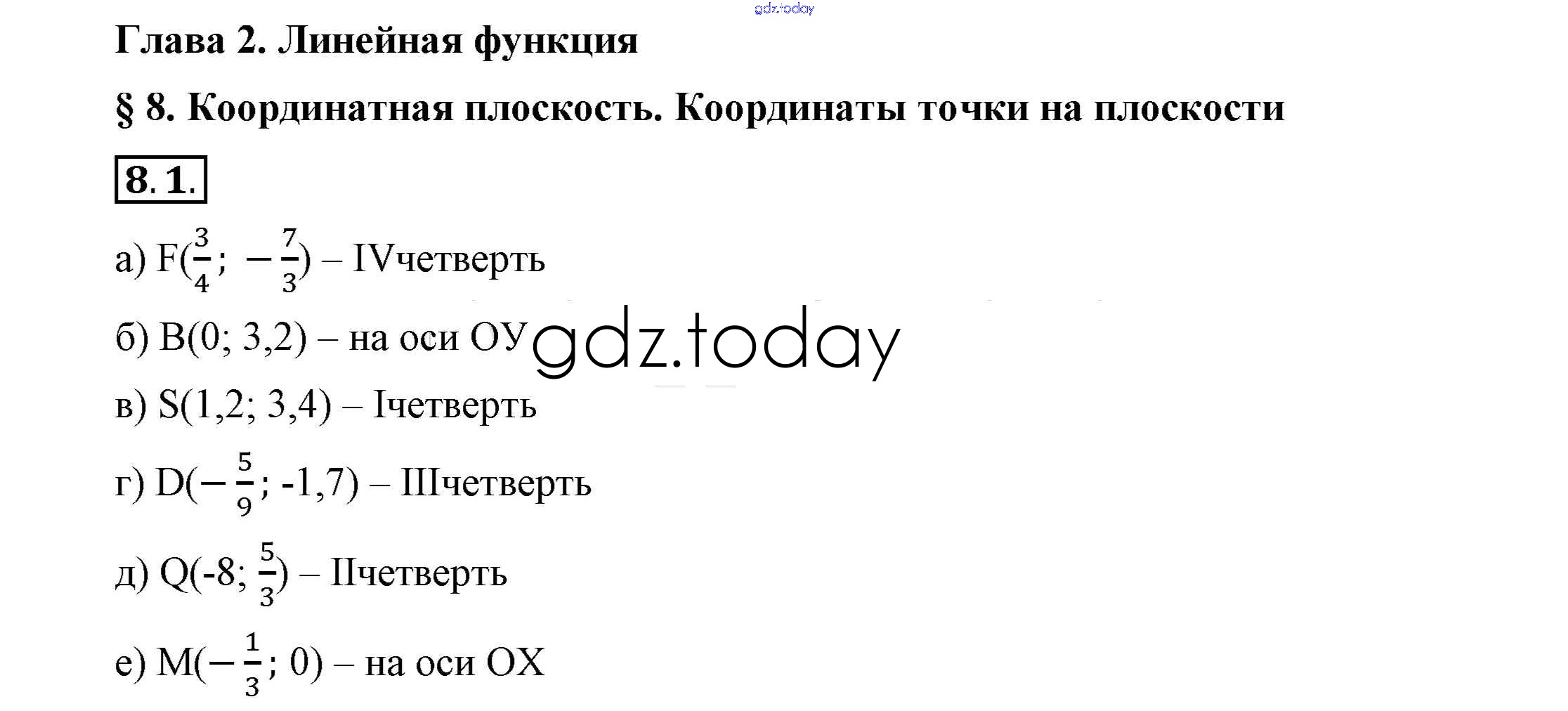 Ответы к Решение к §8. Координатная плоскость. Координаты точки на плоскости 8.1 Учебнику по Алгебре для 7 класса Мордкович, Семёнов Просвещение 2018