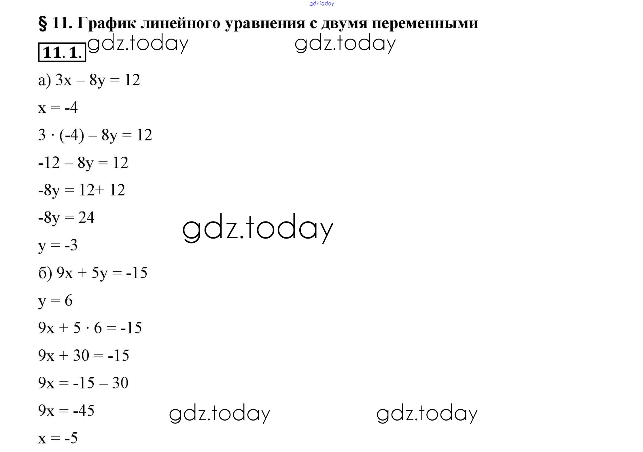 Ответы к Решение к §11. График линейного уравнения с двумя переменными 11.1 Учебнику по Алгебре для 7 класса Мордкович, Семёнов Просвещение 2018