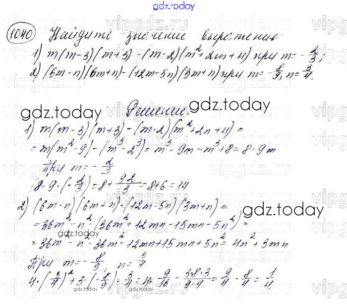 На страницах сайта gdz.today вы найдете учебный и вспомогательный материал, направленный на улучшения знаний школьной программы. ГДЗ - онлайн мир знаний Решение к упражнениям 1040 Учебнику по Алгебре для 7 класса Мерзляк, Полонский Базовый уровень Вентана-граф Алгоритм успеха 2016