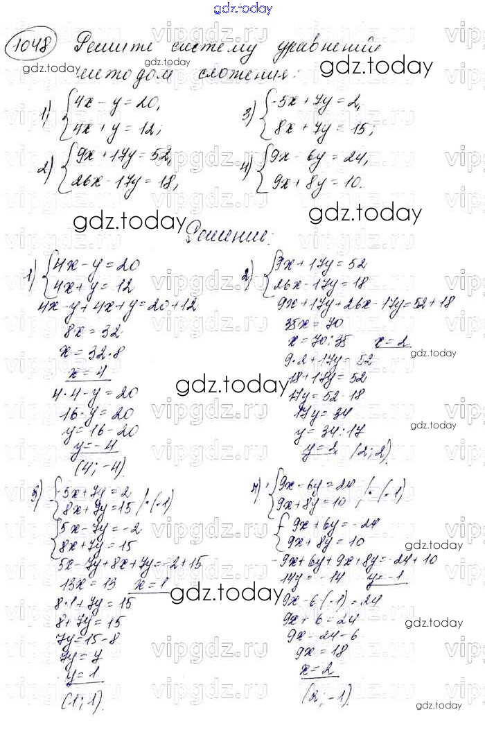 На страницах сайта gdz.today вы найдете учебный и вспомогательный материал, направленный на улучшения знаний школьной программы. ГДЗ - онлайн мир знаний Решение к упражнениям 1048 Учебнику по Алгебре для 7 класса Мерзляк, Полонский Базовый уровень Вентана-граф Алгоритм успеха 2016