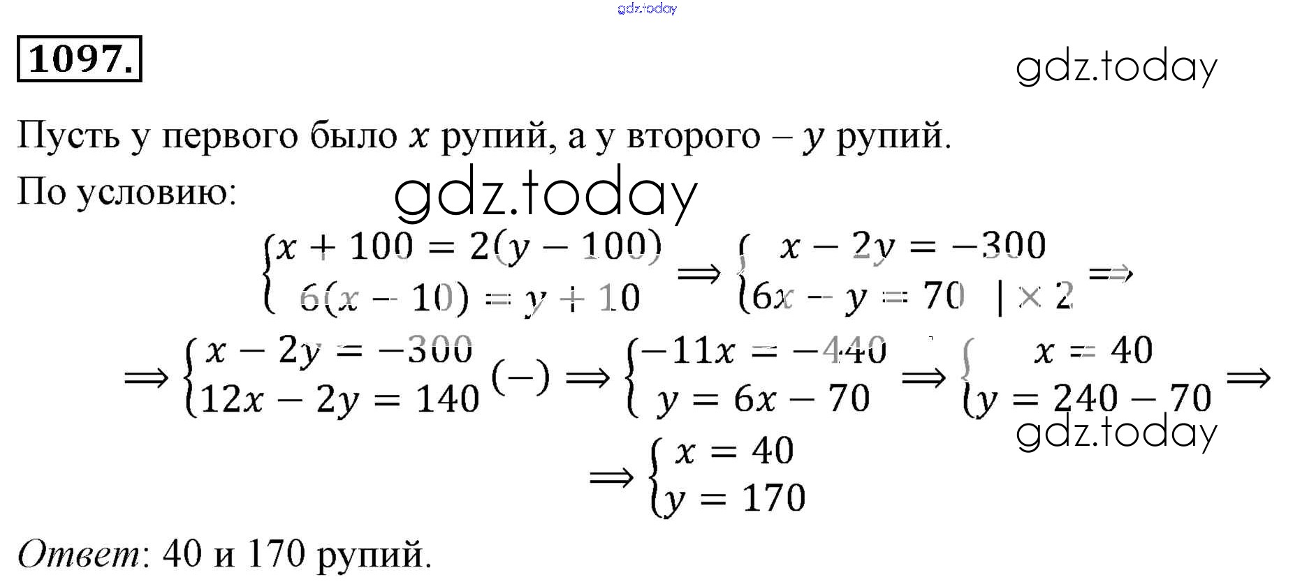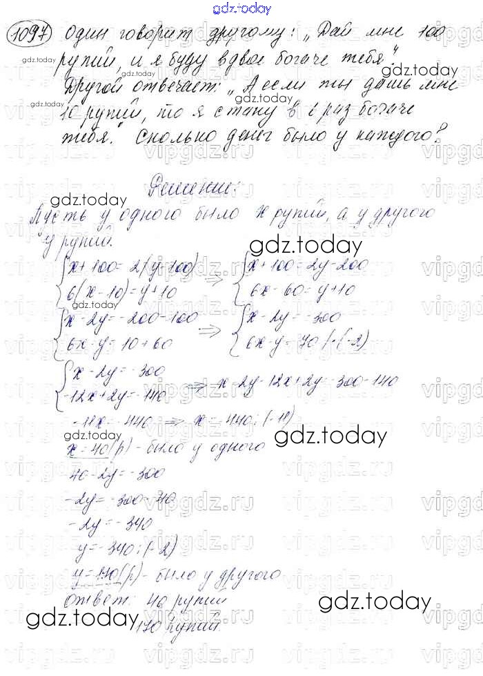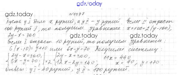 Ответы к Решение к упражнениям 1097 Учебнику по Алгебре для 7 класса Мерзляк, Полонский Базовый уровень Вентана-граф Алгоритм успеха 2016