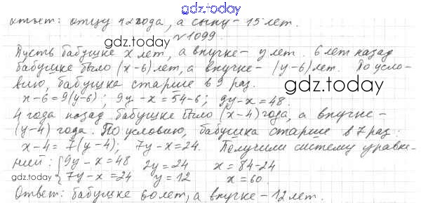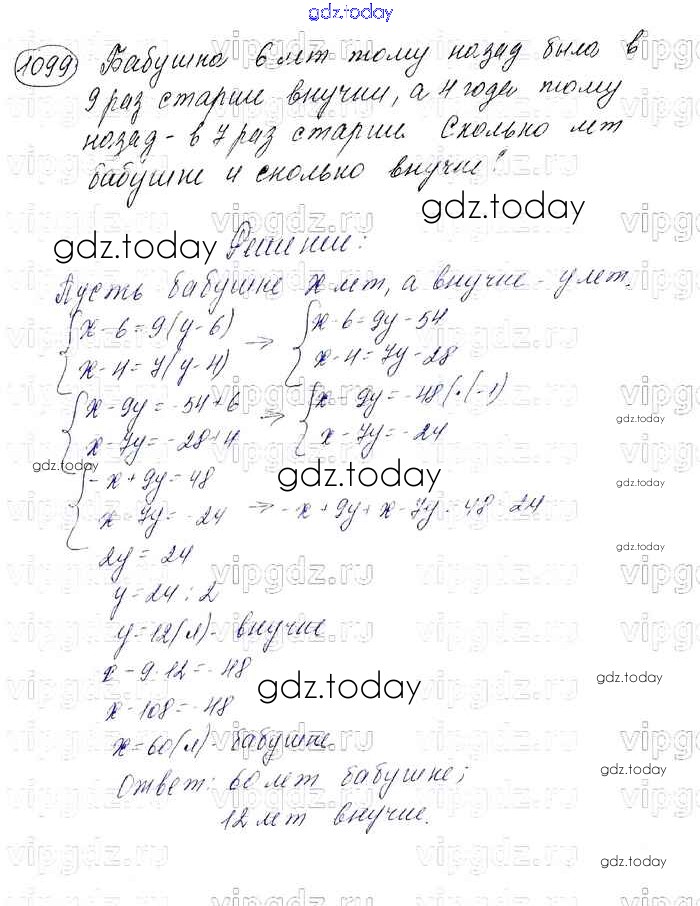 Ответы к Решение к упражнениям 1099 Учебнику по Алгебре для 7 класса Мерзляк, Полонский Базовый уровень Вентана-граф Алгоритм успеха 2016