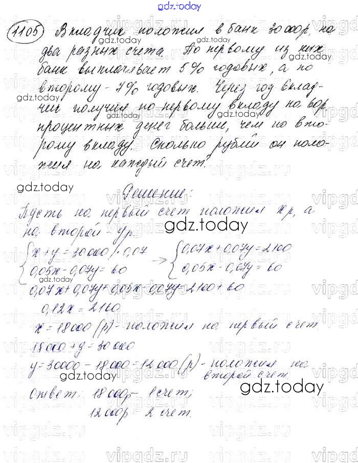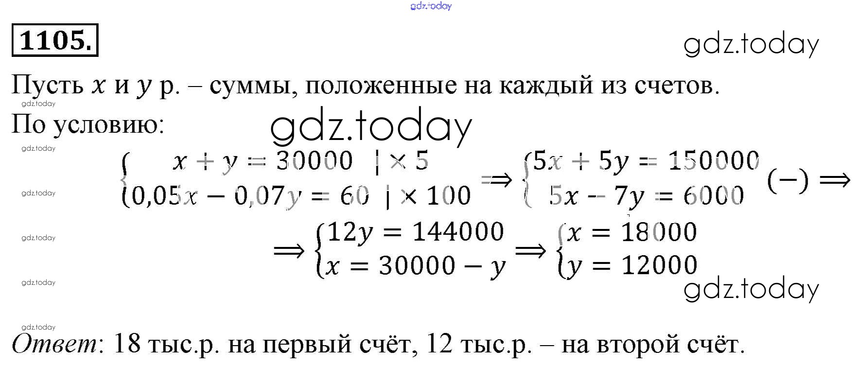 Ответы к Решение к упражнениям 1105 Учебнику по Алгебре для 7 класса Мерзляк, Полонский Базовый уровень Вентана-граф Алгоритм успеха 2016