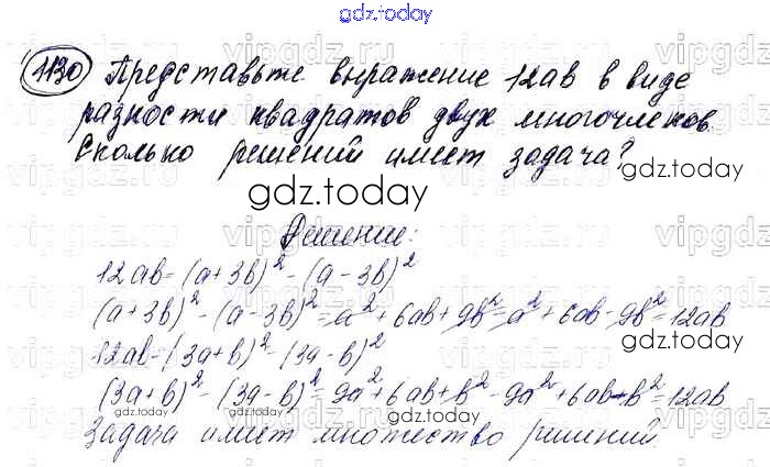 На страницах сайта gdz.today вы найдете учебный и вспомогательный материал, направленный на улучшения знаний школьной программы. ГДЗ - онлайн мир знаний Решение к упражнениям 1130 Учебнику по Алгебре для 7 класса Мерзляк, Полонский Базовый уровень Вентана-граф Алгоритм успеха 2016