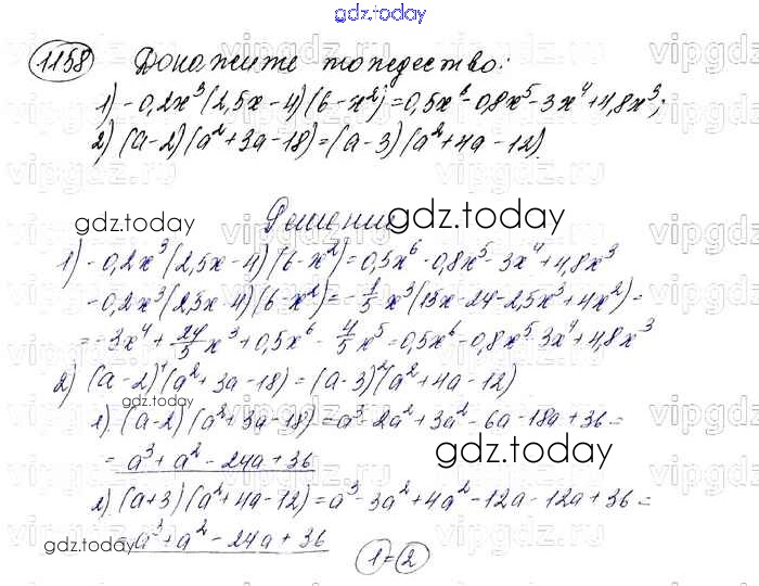На страницах сайта gdz.today вы найдете учебный и вспомогательный материал, направленный на улучшения знаний школьной программы. ГДЗ - онлайн мир знаний Решение к упражнениям 1158 Учебнику по Алгебре для 7 класса Мерзляк, Полонский Базовый уровень Вентана-граф Алгоритм успеха 2016