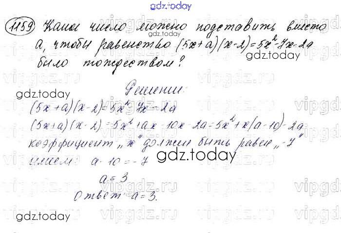 На страницах сайта gdz.today вы найдете учебный и вспомогательный материал, направленный на улучшения знаний школьной программы. ГДЗ - онлайн мир знаний Решение к упражнениям 1159 Учебнику по Алгебре для 7 класса Мерзляк, Полонский Базовый уровень Вентана-граф Алгоритм успеха 2016