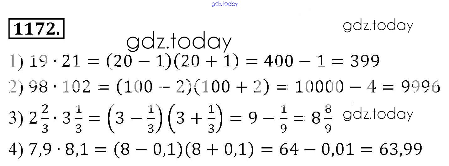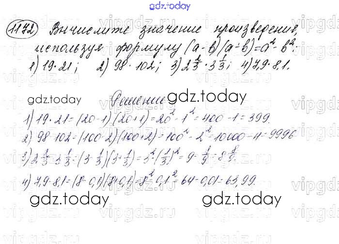 На страницах сайта gdz.today вы найдете учебный и вспомогательный материал, направленный на улучшения знаний школьной программы. ГДЗ - онлайн мир знаний Решение к упражнениям 1172 Учебнику по Алгебре для 7 класса Мерзляк, Полонский Базовый уровень Вентана-граф Алгоритм успеха 2016