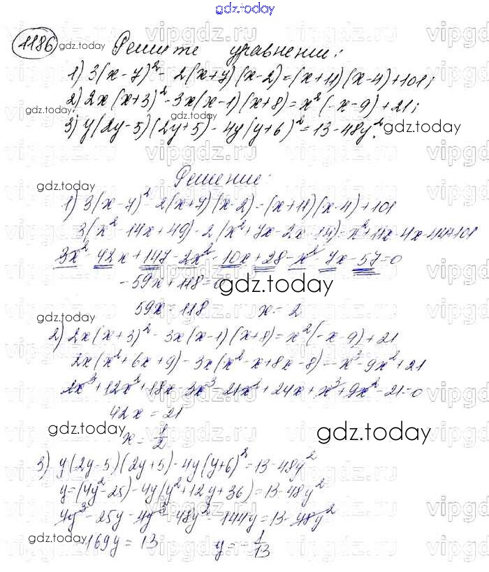 На страницах сайта gdz.today вы найдете учебный и вспомогательный материал, направленный на улучшения знаний школьной программы. ГДЗ - онлайн мир знаний Решение к упражнениям 1186 Учебнику по Алгебре для 7 класса Мерзляк, Полонский Базовый уровень Вентана-граф Алгоритм успеха 2016