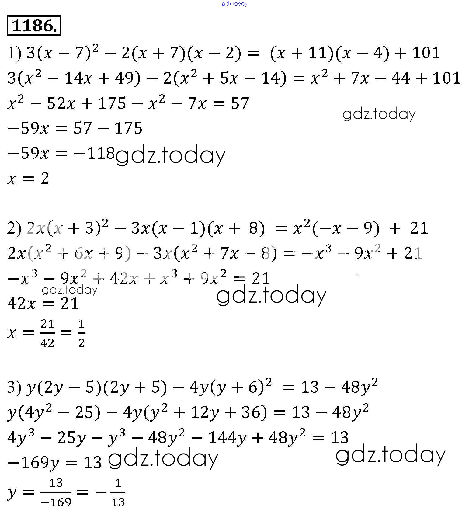 Ответы к Решение к упражнениям 1186 Учебнику по Алгебре для 7 класса Мерзляк, Полонский Базовый уровень Вентана-граф Алгоритм успеха 2016