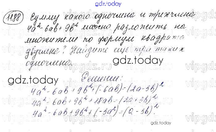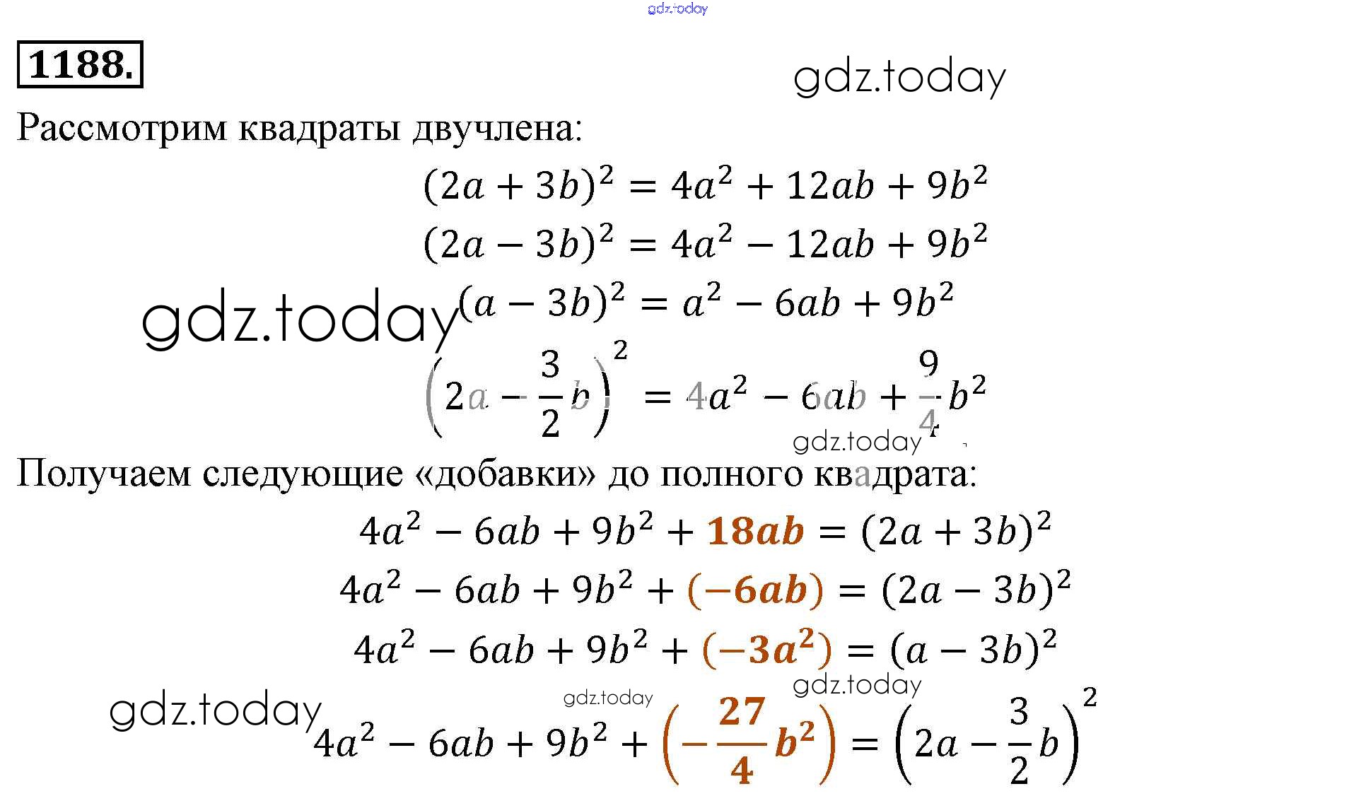 На страницах сайта gdz.today вы найдете учебный и вспомогательный материал, направленный на улучшения знаний школьной программы. ГДЗ - онлайн мир знаний Решение к упражнениям 1188 Учебнику по Алгебре для 7 класса Мерзляк, Полонский Базовый уровень Вентана-граф Алгоритм успеха 2016