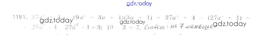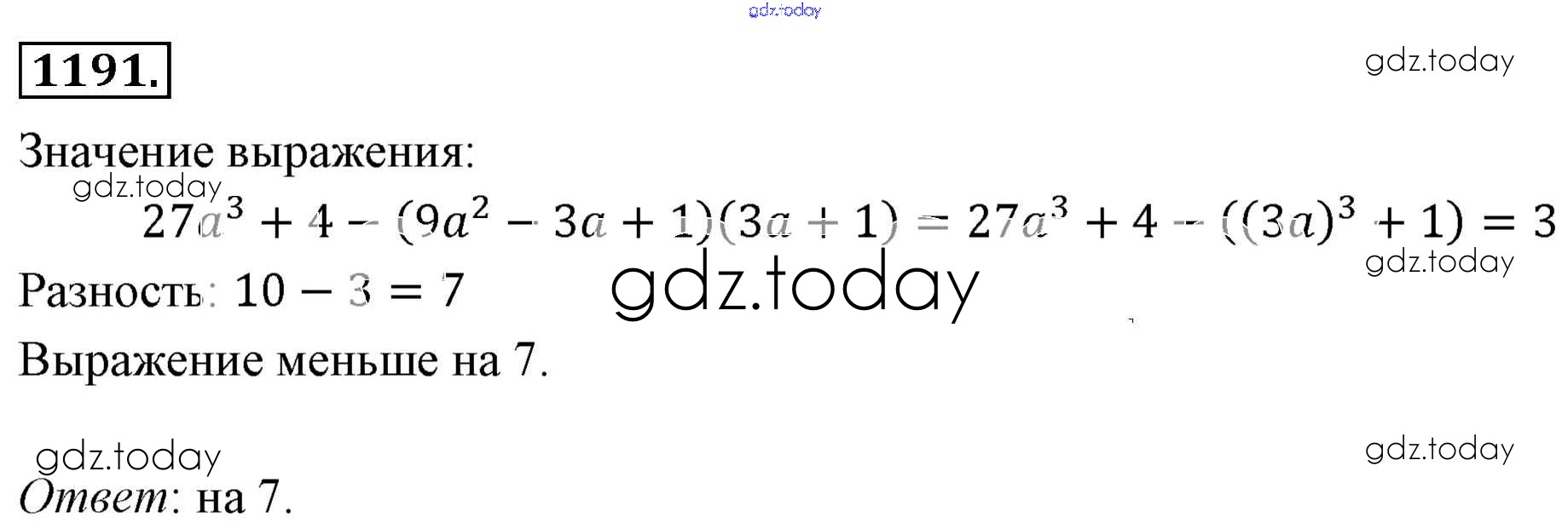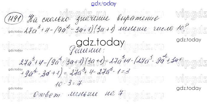 На страницах сайта gdz.today вы найдете учебный и вспомогательный материал, направленный на улучшения знаний школьной программы. ГДЗ - онлайн мир знаний Решение к упражнениям 1191 Учебнику по Алгебре для 7 класса Мерзляк, Полонский Базовый уровень Вентана-граф Алгоритм успеха 2016