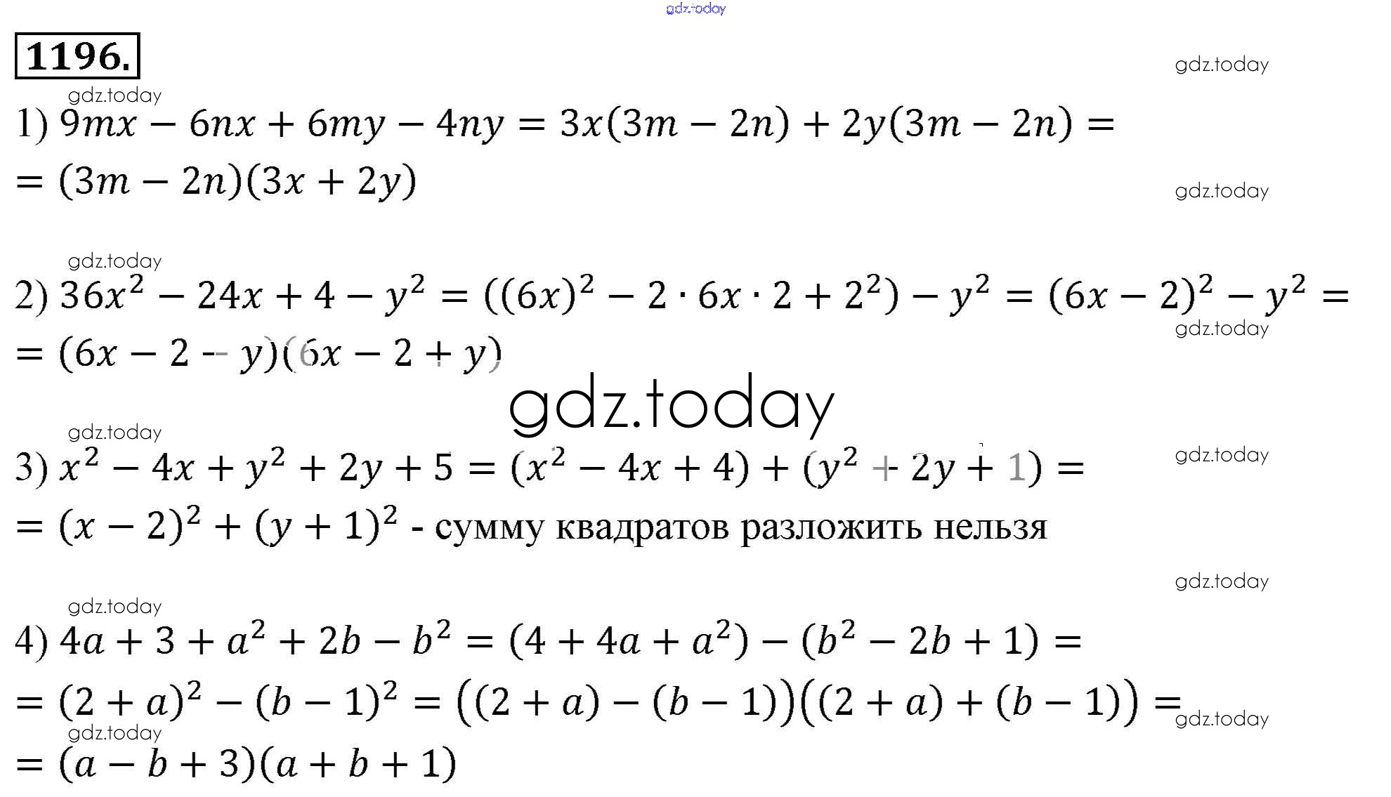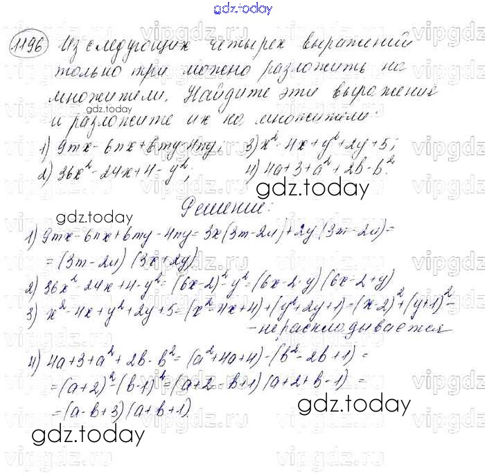 На страницах сайта gdz.today вы найдете учебный и вспомогательный материал, направленный на улучшения знаний школьной программы. ГДЗ - онлайн мир знаний Решение к упражнениям 1196 Учебнику по Алгебре для 7 класса Мерзляк, Полонский Базовый уровень Вентана-граф Алгоритм успеха 2016