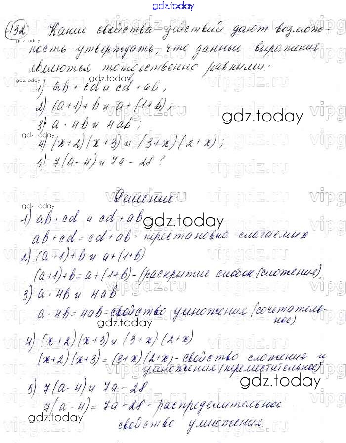 На страницах сайта gdz.today вы найдете учебный и вспомогательный материал, направленный на улучшения знаний школьной программы. ГДЗ - онлайн мир знаний Решение к упражнениям 132 Учебнику по Алгебре для 7 класса Мерзляк, Полонский Базовый уровень Вентана-граф Алгоритм успеха 2016