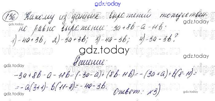 Ответы к Решение к упражнениям 136 Учебнику по Алгебре для 7 класса Мерзляк, Полонский Базовый уровень Вентана-граф Алгоритм успеха 2016
