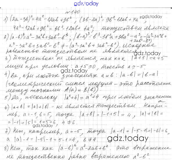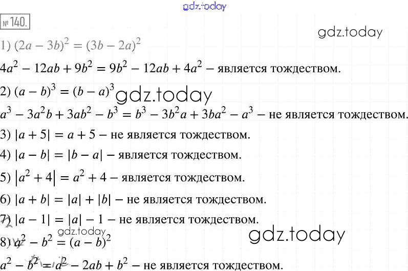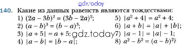 На страницах сайта gdz.today вы найдете учебный и вспомогательный материал, направленный на улучшения знаний школьной программы. ГДЗ - онлайн мир знаний Решение к упражнениям 140 Учебнику по Алгебре для 7 класса Мерзляк, Полонский Базовый уровень Вентана-граф Алгоритм успеха 2016