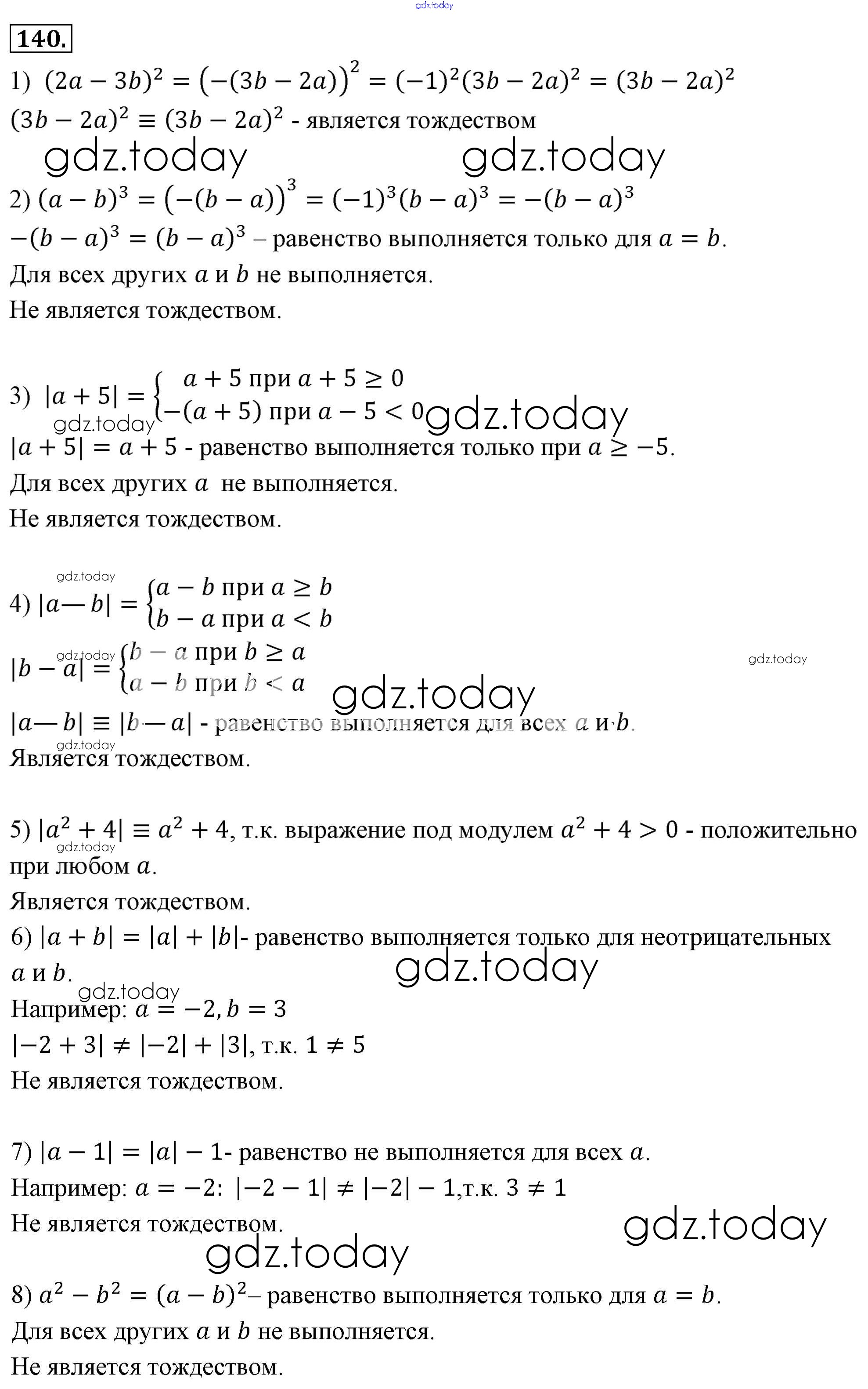 Ответы к Решение к упражнениям 140 Учебнику по Алгебре для 7 класса Мерзляк, Полонский Базовый уровень Вентана-граф Алгоритм успеха 2016