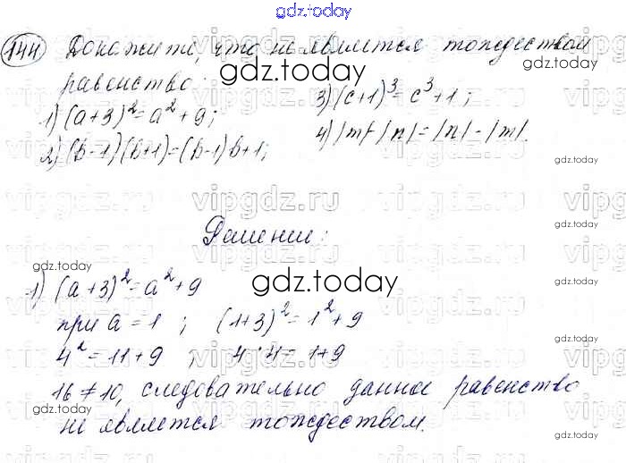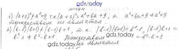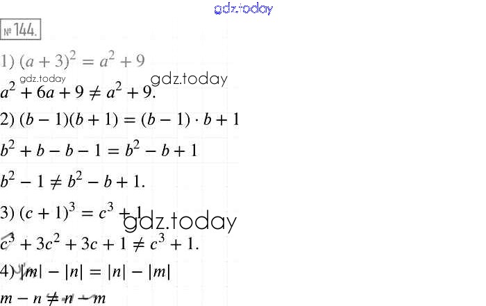 На страницах сайта gdz.today вы найдете учебный и вспомогательный материал, направленный на улучшения знаний школьной программы. ГДЗ - онлайн мир знаний Решение к упражнениям 144 Учебнику по Алгебре для 7 класса Мерзляк, Полонский Базовый уровень Вентана-граф Алгоритм успеха 2016