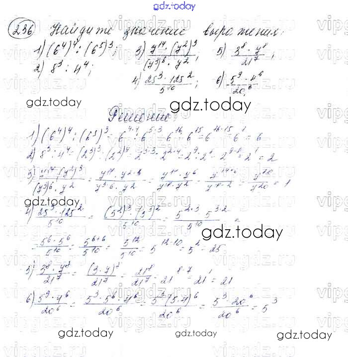 На страницах сайта gdz.today вы найдете учебный и вспомогательный материал, направленный на улучшения знаний школьной программы. ГДЗ - онлайн мир знаний Решение к упражнениям 236 Учебнику по Алгебре для 7 класса Мерзляк, Полонский Базовый уровень Вентана-граф Алгоритм успеха 2016