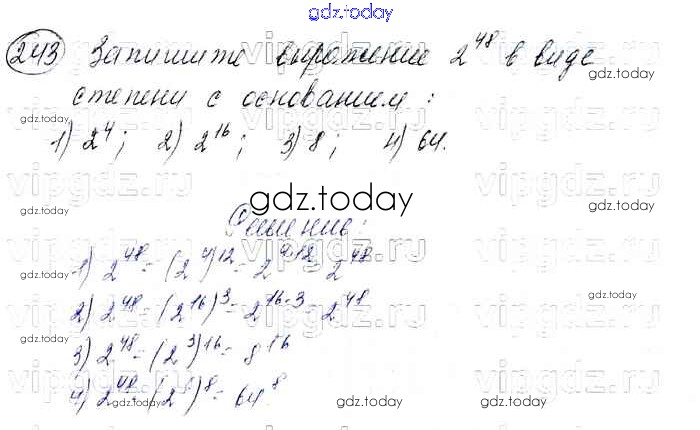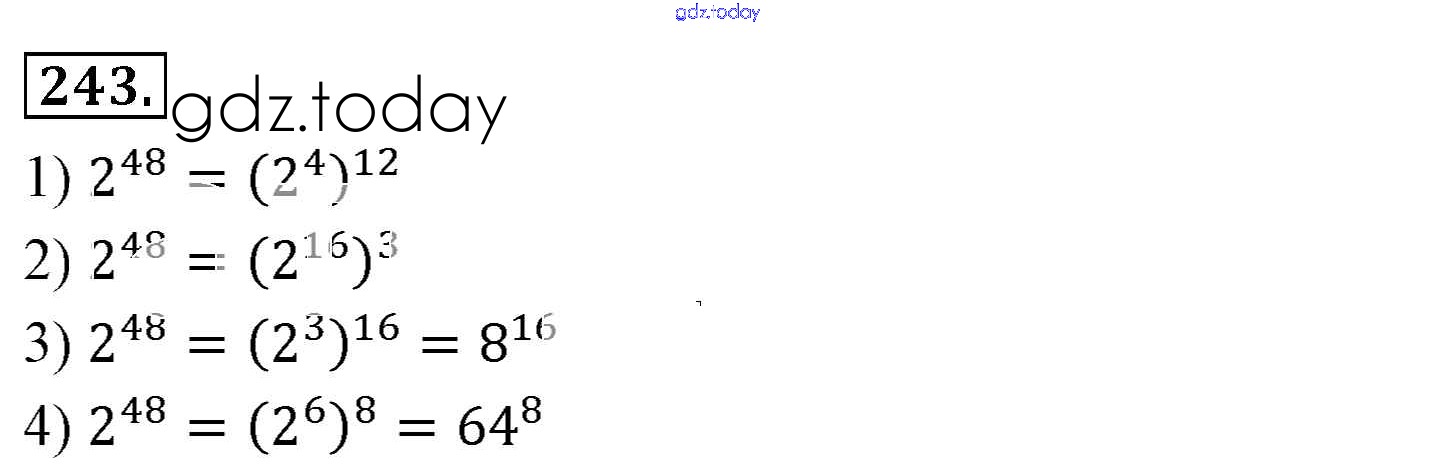 На страницах сайта gdz.today вы найдете учебный и вспомогательный материал, направленный на улучшения знаний школьной программы. ГДЗ - онлайн мир знаний Решение к упражнениям 243 Учебнику по Алгебре для 7 класса Мерзляк, Полонский Базовый уровень Вентана-граф Алгоритм успеха 2016