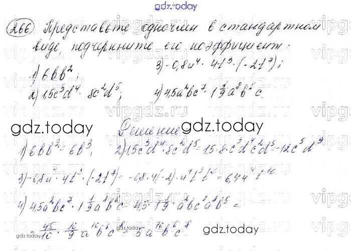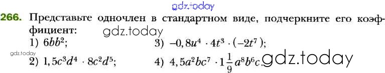 На страницах сайта gdz.today вы найдете учебный и вспомогательный материал, направленный на улучшения знаний школьной программы. ГДЗ - онлайн мир знаний Решение к упражнениям 266 Учебнику по Алгебре для 7 класса Мерзляк, Полонский Базовый уровень Вентана-граф Алгоритм успеха 2016
