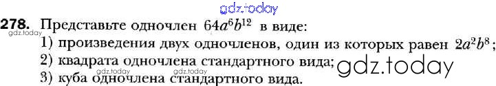 На страницах сайта gdz.today вы найдете учебный и вспомогательный материал, направленный на улучшения знаний школьной программы. ГДЗ - онлайн мир знаний Решение к упражнениям 278 Учебнику по Алгебре для 7 класса Мерзляк, Полонский Базовый уровень Вентана-граф Алгоритм успеха 2016