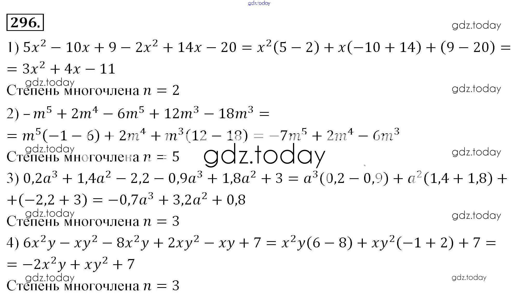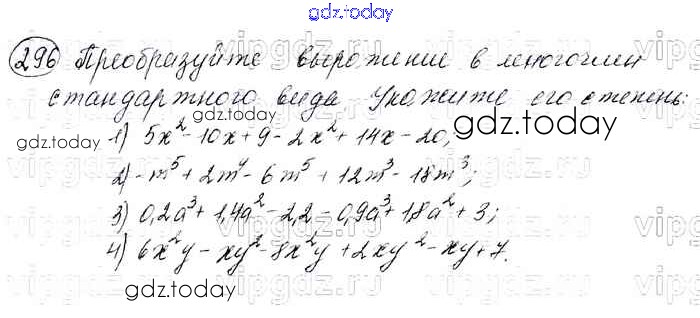 На страницах сайта gdz.today вы найдете учебный и вспомогательный материал, направленный на улучшения знаний школьной программы. ГДЗ - онлайн мир знаний Решение к упражнениям 296 Учебнику по Алгебре для 7 класса Мерзляк, Полонский Базовый уровень Вентана-граф Алгоритм успеха 2016