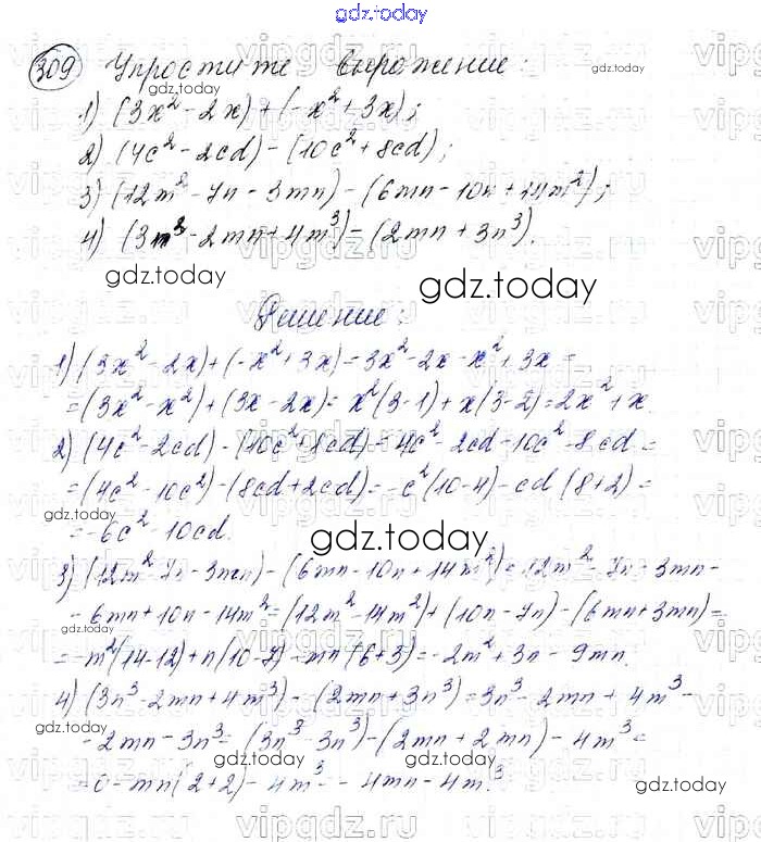 На страницах сайта gdz.today вы найдете учебный и вспомогательный материал, направленный на улучшения знаний школьной программы. ГДЗ - онлайн мир знаний Решение к упражнениям 309 Учебнику по Алгебре для 7 класса Мерзляк, Полонский Базовый уровень Вентана-граф Алгоритм успеха 2016
