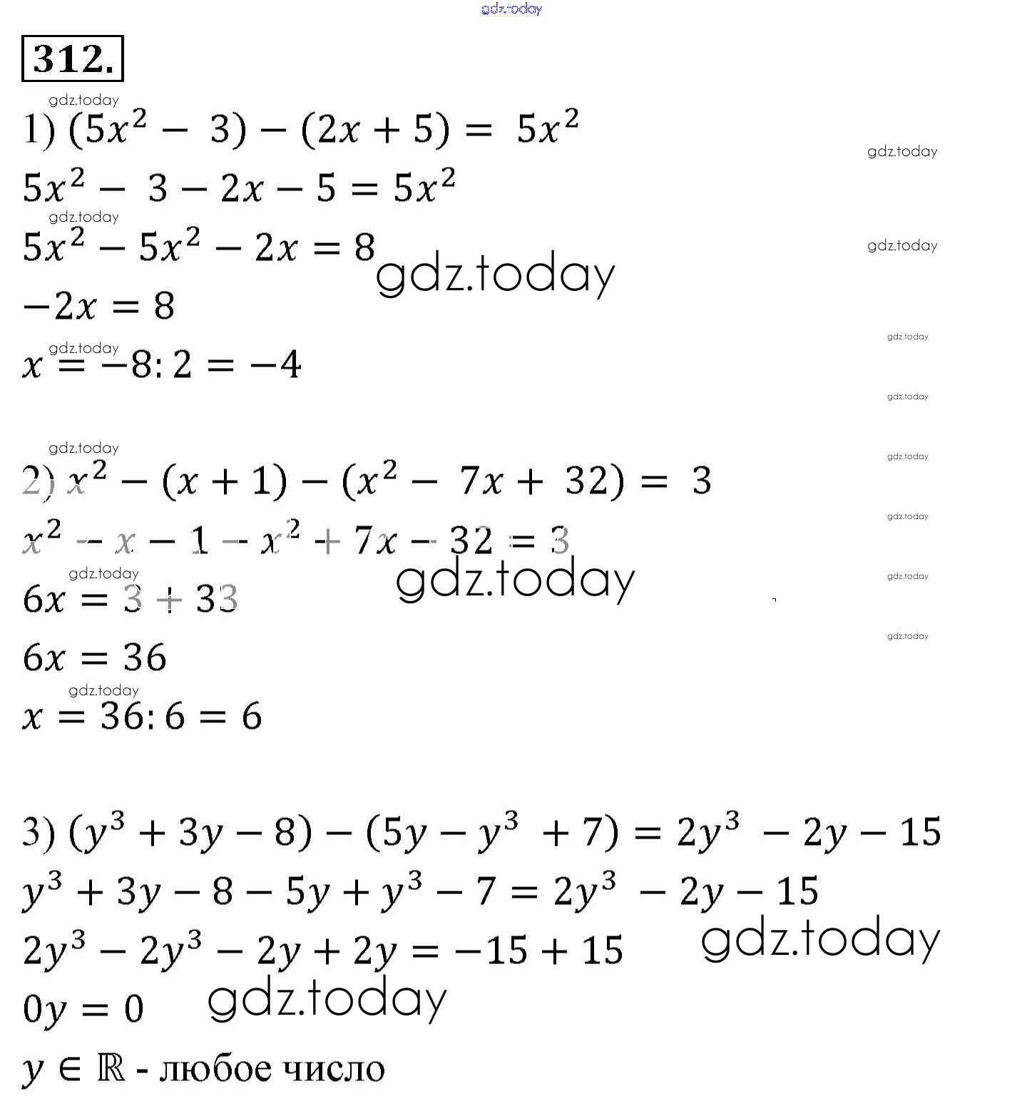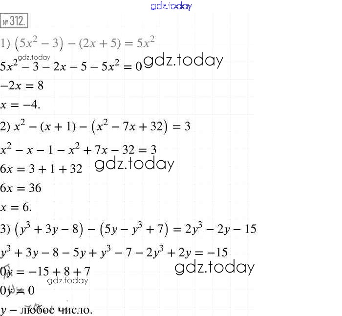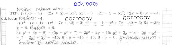 На страницах сайта gdz.today вы найдете учебный и вспомогательный материал, направленный на улучшения знаний школьной программы. ГДЗ - онлайн мир знаний Решение к упражнениям 312 Учебнику по Алгебре для 7 класса Мерзляк, Полонский Базовый уровень Вентана-граф Алгоритм успеха 2016