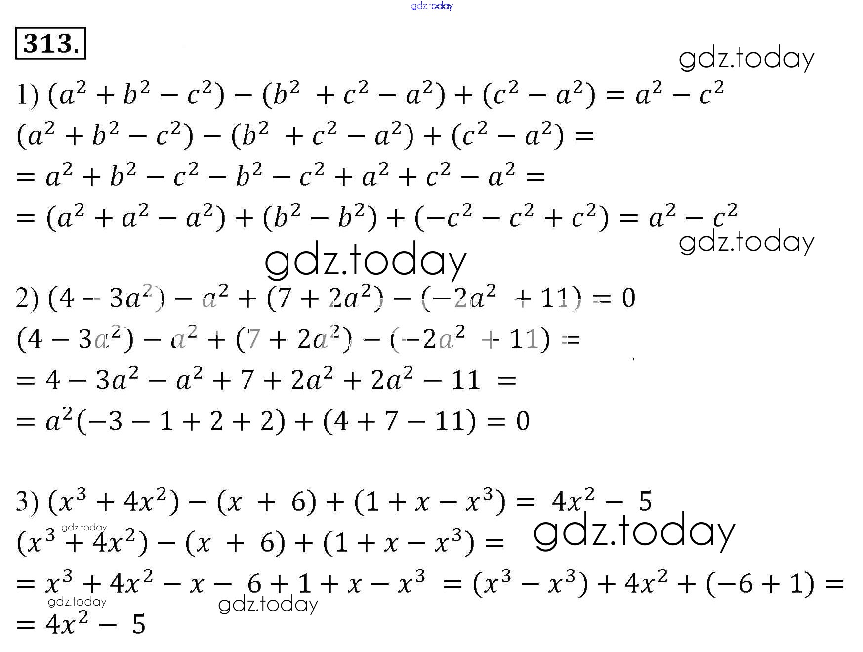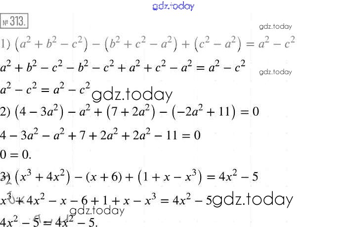 На страницах сайта gdz.today вы найдете учебный и вспомогательный материал, направленный на улучшения знаний школьной программы. ГДЗ - онлайн мир знаний Решение к упражнениям 313 Учебнику по Алгебре для 7 класса Мерзляк, Полонский Базовый уровень Вентана-граф Алгоритм успеха 2016