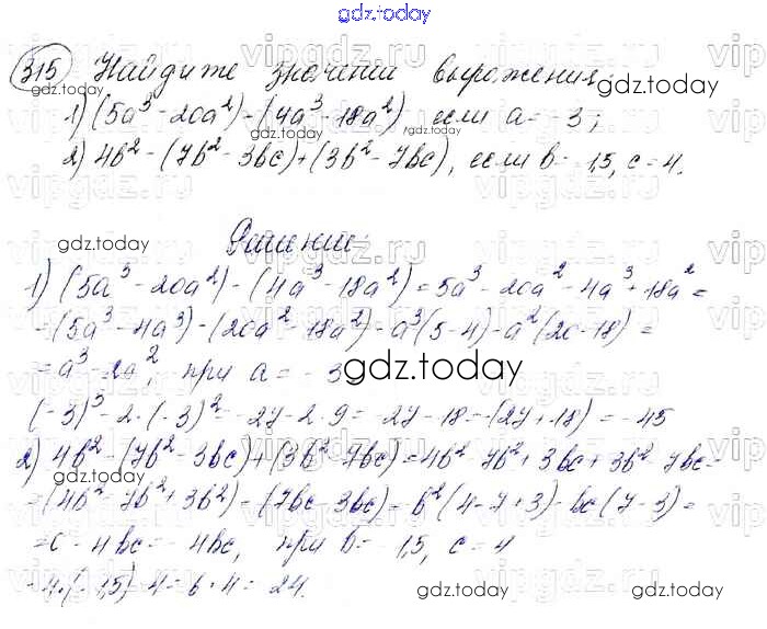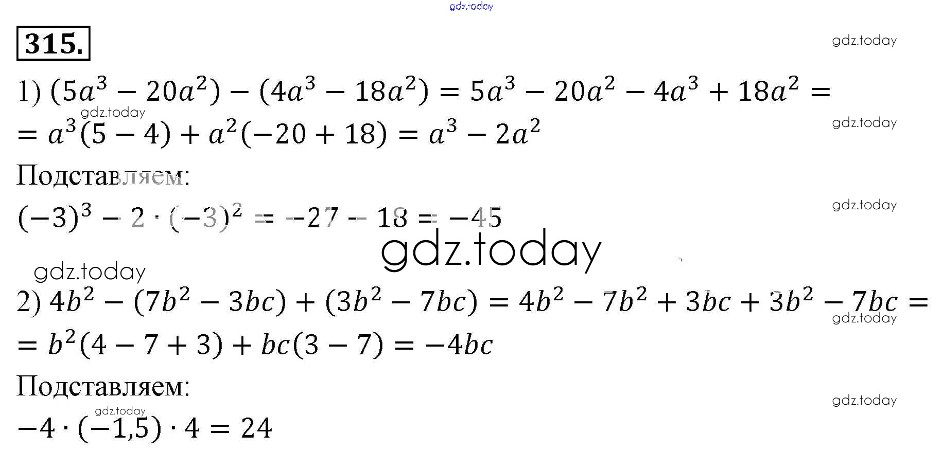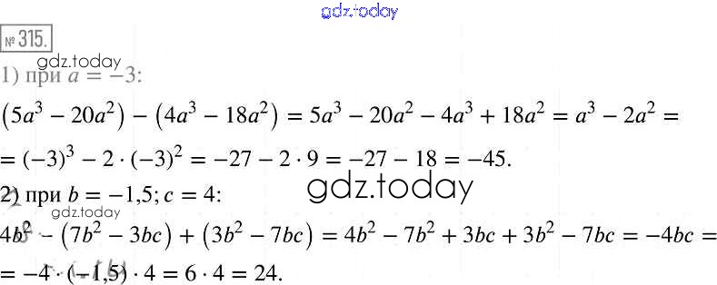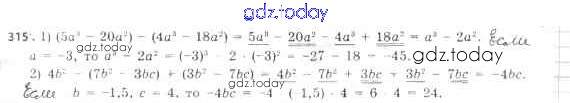 На страницах сайта gdz.today вы найдете учебный и вспомогательный материал, направленный на улучшения знаний школьной программы. ГДЗ - онлайн мир знаний Решение к упражнениям 315 Учебнику по Алгебре для 7 класса Мерзляк, Полонский Базовый уровень Вентана-граф Алгоритм успеха 2016