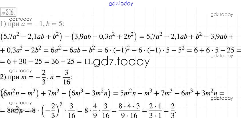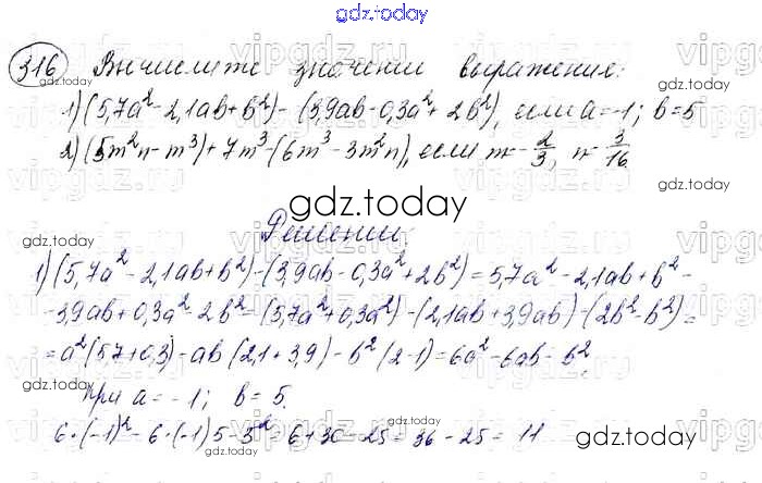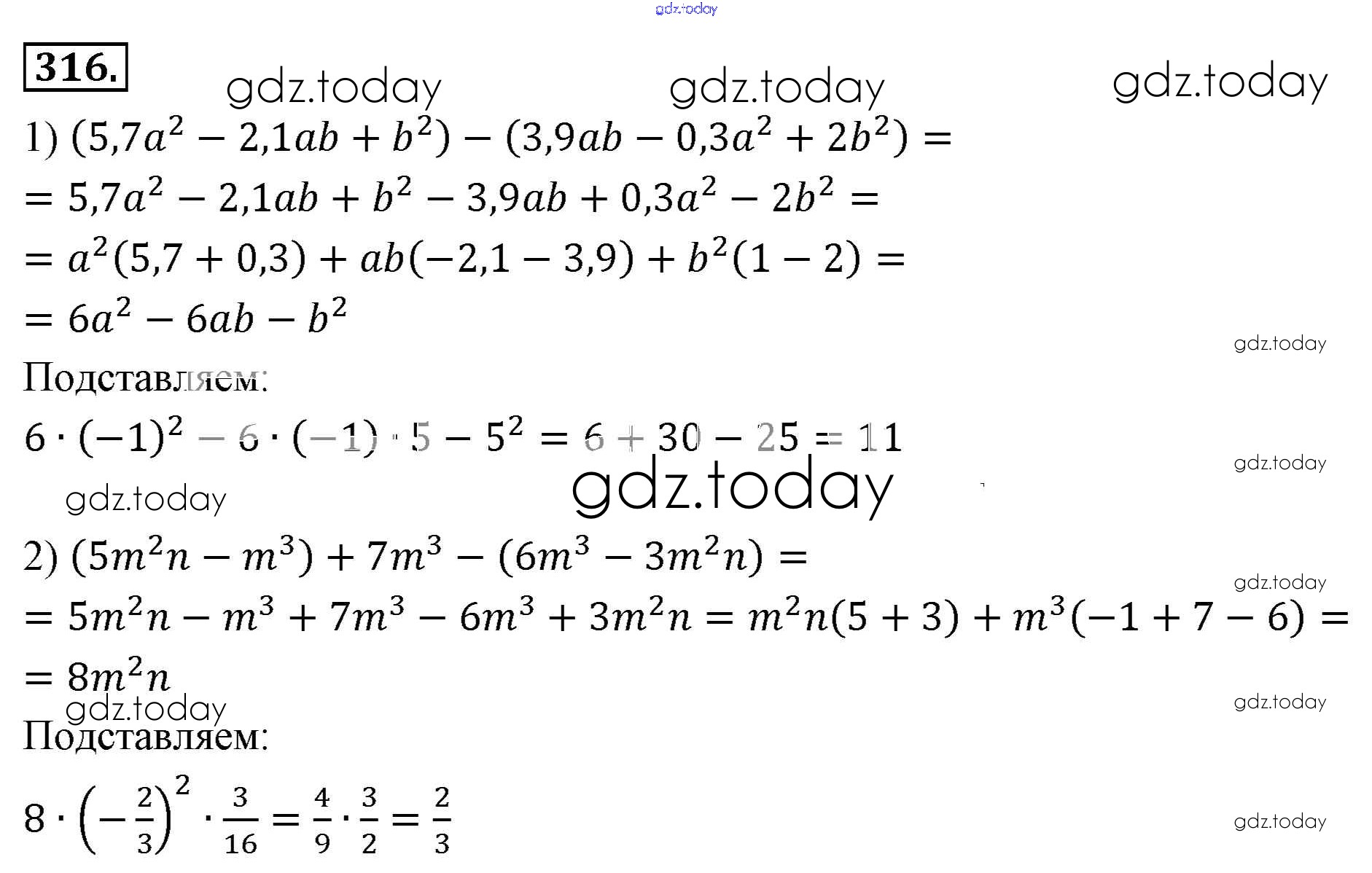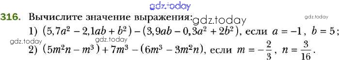 На страницах сайта gdz.today вы найдете учебный и вспомогательный материал, направленный на улучшения знаний школьной программы. ГДЗ - онлайн мир знаний Решение к упражнениям 316 Учебнику по Алгебре для 7 класса Мерзляк, Полонский Базовый уровень Вентана-граф Алгоритм успеха 2016