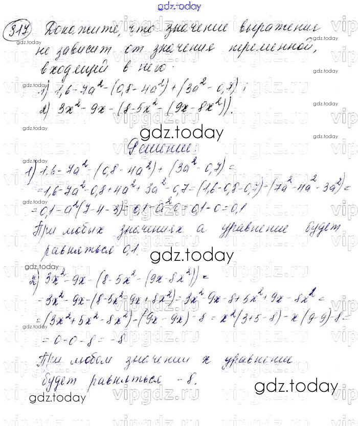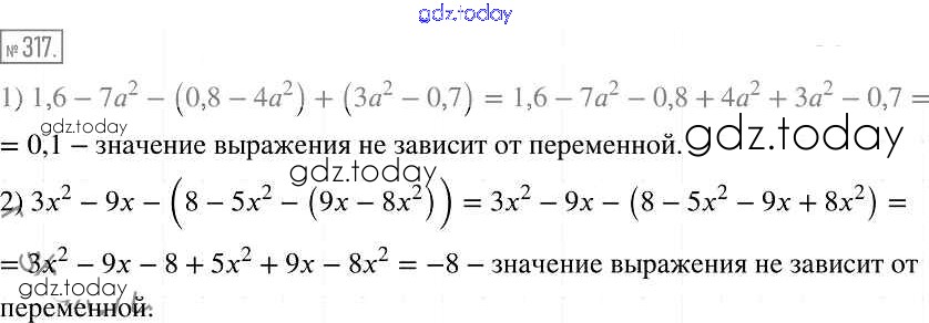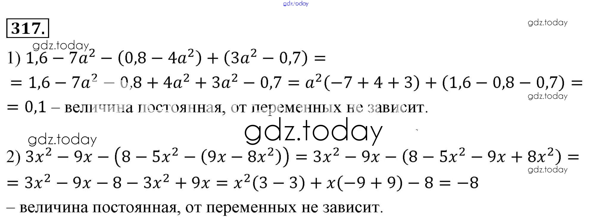 На страницах сайта gdz.today вы найдете учебный и вспомогательный материал, направленный на улучшения знаний школьной программы. ГДЗ - онлайн мир знаний Решение к упражнениям 317 Учебнику по Алгебре для 7 класса Мерзляк, Полонский Базовый уровень Вентана-граф Алгоритм успеха 2016