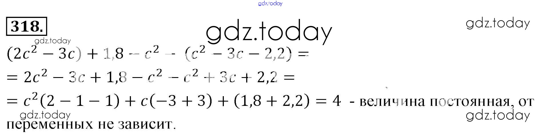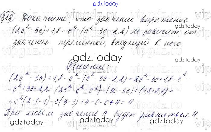 На страницах сайта gdz.today вы найдете учебный и вспомогательный материал, направленный на улучшения знаний школьной программы. ГДЗ - онлайн мир знаний Решение к упражнениям 318 Учебнику по Алгебре для 7 класса Мерзляк, Полонский Базовый уровень Вентана-граф Алгоритм успеха 2016