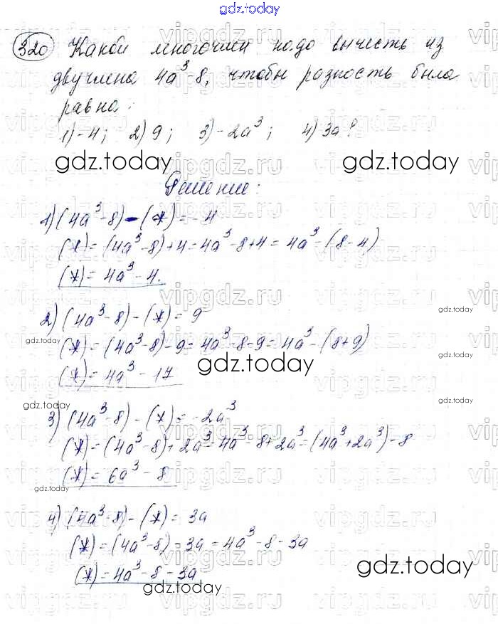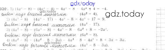 На страницах сайта gdz.today вы найдете учебный и вспомогательный материал, направленный на улучшения знаний школьной программы. ГДЗ - онлайн мир знаний Решение к упражнениям 320 Учебнику по Алгебре для 7 класса Мерзляк, Полонский Базовый уровень Вентана-граф Алгоритм успеха 2016