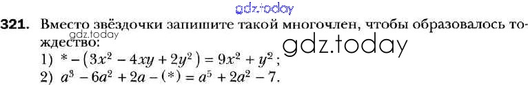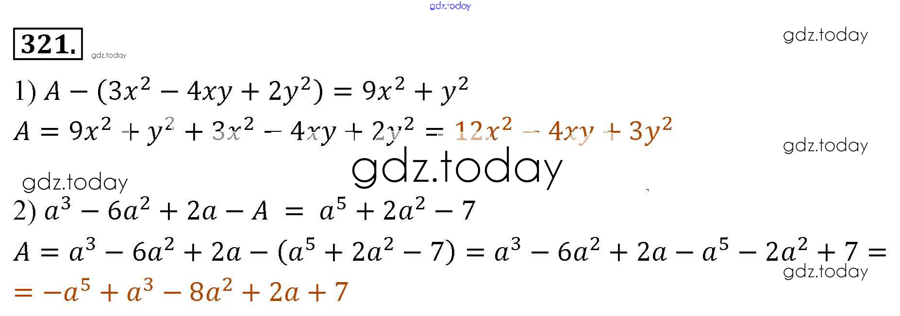 На страницах сайта gdz.today вы найдете учебный и вспомогательный материал, направленный на улучшения знаний школьной программы. ГДЗ - онлайн мир знаний Решение к упражнениям 321 Учебнику по Алгебре для 7 класса Мерзляк, Полонский Базовый уровень Вентана-граф Алгоритм успеха 2016