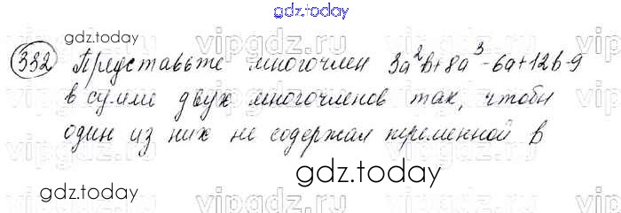 На страницах сайта gdz.today вы найдете учебный и вспомогательный материал, направленный на улучшения знаний школьной программы. ГДЗ - онлайн мир знаний Решение к упражнениям 332 Учебнику по Алгебре для 7 класса Мерзляк, Полонский Базовый уровень Вентана-граф Алгоритм успеха 2016