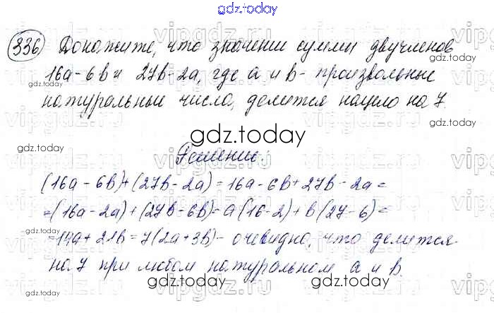На страницах сайта gdz.today вы найдете учебный и вспомогательный материал, направленный на улучшения знаний школьной программы. ГДЗ - онлайн мир знаний Решение к упражнениям 336 Учебнику по Алгебре для 7 класса Мерзляк, Полонский Базовый уровень Вентана-граф Алгоритм успеха 2016